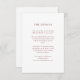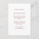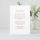 Estes cartões de informação de convidados minimalistas e elegantes apresentam texto vermelho escuro sobre fundo branco, para uma aparência simples e na moda. Você pode usar esses cartões para dirigir, receber ou transportar informações, informações sobre hotel ou acomodações e quaisquer outros detalhes de casamento que você precise conhecer.