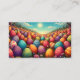 An endless field of beautifully painted Easter eggs glows under a soft sun. The cheerful colors and playful patterns of the eggs spread an atmosphere of joy and security. Colorful spring flowers bloom between the eggs and complete the peaceful, dreamlike scenery. A place full of magic that awakens childhood memories and the anticipation of Easter.