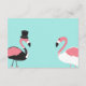 Um cartão de cercado detalhado do casamento em turquesa com texto preto e uma noiva e noiva flamingo nas costas. Coloque suas informações neste cartão, adicione-as ao seu carrinho e envie-as aos seus convidados. Turquoise Flamingo Detalhes do Gabinete Cartão de Feriado Design | ©Melissa Patton — Designer/Ilustrator