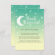 Formulário de solicitação de livro que corresponde ao convite de chá de fraldas estrelado e cintilante. Cor verde suave e amarelo neutra em gêneros com lua crescente branca e estrelas cintilantes. O cartão Adorable Book Request trará livros para bebê. O poema diz: Um pequeno pedido não será muito duro, por favor traga um livro em vez de um cartão. Não importa se é bem amado ou marca-novo, de qualquer forma seu livro lembrará de você. Por favor, escreva uma mensagem no cobrir dentro, e o nosso bebê irá acalmar o seu amor para sempre. Altere facilmente o texto ou o verso para corresponder ao seu estilo exclusivo. O verso mostra um gradiente verde e amarelo macio com estrelas cintilantes.