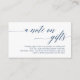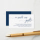 Um cartão de casamento embutido com a Nota de presentes, para incluir o seu desejo de lua de mel e desejar bons detalhes. Script Clássico Moderno, no tema Azul Marinho.