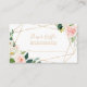 Esta rifa geométrica elegante de fralda verde e ouro é perfeita para uma simples celebração de chá de fraldas. A design apresenta rosas brancos, cor-de-rosa e pincéis pintados à mão e um toque de verde, adoráveis quadros geométricos de ouro, inspiradora beleza artística.