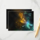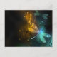 Voo de libélula brilhante, verde, desenhada artisticamente, com asas verdes e amarelas transparentes sobre fundo noturno brilhante com plantas pântanas e vagalumes. Dragonfly brilhante.