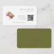 Chic with modern elegance. These wedding RSVP QR code cards feature a lovely blush pink rose bouquet, wedding detail text, QR code for website and a contemporary set of fonts in olive green, against white and olive green backgrounds.