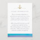 Personalize este na moda moderno Elegante Limpo e design de Inserção Náutica de Casamento Claro para obter informações adicionais para convidados de casamento. Totalmente personalizável e definido como um modelo para sua fácil personalização. Design branco, com uma faixa de cor azul na parte inferior. Por favor note que o ouro nesta design, sobre âncora dourada, não é uma folha de ouro real, é uma impressão de cor. A cor do texto é personalizável, os elementos dourados podem ser movidos ou excluídos.