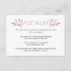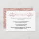 Este cartão de inserção de casamento moderno destaca belos ramos com folhas feitas de brilho de ouro rosa falso e sua redação. A parte de trás é coberta com um padrão feito de folhas brancas em um fundo de brilho de ouro rosa.