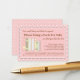 Um poema encantador solicita que os convidados tragam um livro para o futuro bebê para começar a nova mãe com uma biblioteca de livros infantis amados. Basta inserir este doce dentro do envelope do chá de fraldas. O adorável esquema de cor rosa, amarelo e hortelã com uma fileira fofa de livros correspondentes faz um design perfeito para coordenar com quase qualquer convite chá de fraldas para uma garota.