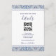 Cartão de inserção de detalhes de casamento azul. Edite facilmente as cores da fonte clicando no botão Ferramenta de Edição de Design. Adicione seu próprio código QR para que os convidados possam responder facilmente e ver mais detalhes no seu site. Encontre o conjunto de convites correspondente e mais em nossa loja - a coleção de azulejos mediterrâneos -. Entre em contato conosco para mais produtos correspondentes.