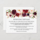 Cartão de Inserção de Detalhes de Casamento de Aquarela Elegante Moderno Borgonha inclui rosas borgonha, rosas rosa, rosas vermelhas e folhagens botânicas.