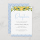Adicione um toque de charme italiano à sua suíte de casamento com esta elegante carta de inserção de recepção La Dolce Vita. Projetado com clássicos azulejos azuis mediterrânicos, sotaques amarelos de citros de limão e flores azuis e amarelas, este cartão complementa perfeitamente qualquer casamento ao estilo da vintagem, da Costa Amalfi, da Toscana ou do estilo da vintagem italiana. Ideal para compartilhar detalhes da cerimônia postada, como local de recepção, informações de janto ou linha do tempo de celebração. Uma na moda e coesa adição ao seu jogo de papelaria do Mediterrâneo.