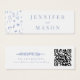 Flor azul empoeirado empoeirado, minúsculo monograma de casamento rústico, cartões de registro QR.