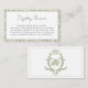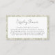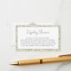 Guie os convidados com facilidade usando este cartão de inserção para chuveiro de exposição de pêra perfeita francês country verde salvia. Com elegantes detalhes em damasco e detalhes de pêra, este cartão é uma maneira encantadora de compartilhar instruções de exposição no chuveiro com seus convidados. Um detalhe atencioso que mantém o chá de noiva organizado enquanto aprimora o tema coeso. Combine com convites, louças e brindes correspondentes para uma celebração coordenada.
