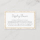 Torne seu chá de noiva sem esforço e elegante com este cartão de inserção para chuveiro de noiva Pérola Perfeita dourada. Com um motivo de pera com uma borda damasco estilo País Francês, este inserto explica a tradição do presente desembrulhado de uma maneira elegante e acolhedora. Um detalhe atencioso que combina perfeitamente com o resto da coleção Pérola Perfeita.