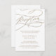 Este cartão de recepção de caligrafia em ouro romântico é perfeito para um casamento simples. O clássico moderno design apresenta espirais de rico e turbilhões brancos com belíssima e elegante tipografia de folha de ouro de champanhe com letra falsa. Personalize este cartão de recinto detalhado com as informações de recepção e inclua também o endereço do seu site de casamento! Nota: Este design não apresenta folha de ouro real. É um gráfico de alta qualidade feito para se parecer com folhas de ouro.
