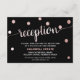 Este cartão de inserção para recepção de casamento em dourado-rosa e preto é perfeito para um casamento sofisticado ou noturno. O design apresenta uma bela caligrafia moderna em folha de dourado-rosa falsa e confetes em um fundo preto para um visual ousado e glamoroso. Personalize este cartão de detalhe com as informações da sua recepção e inclua também o endereço do seu site de casamento!