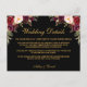 Cartão de Inserção de Detalhes de Casamento com Floral Borgonha Aquarela, Preto e Dourado