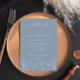 A design é uma peça maravilhosa que equilibra perfeitamente o minimalismo e a elegância. O design apresenta ilustrações simples de arte de linha em um esquema empoeirado de cores azul e branca, o que dá uma sensação contemporânea e na moda. O uso do minimalismo no design é particularmente eficaz, pois desenhar a atenção aos intrincados detalhes florais e cria um sentido de beleza subestimada. O cartão também é incrivelmente funcional, pois oferece um espaço para detalhes importantes de casamento. A sua design simples mas sofisticada deixa certamente uma impressão duradoura sobre os convidados, e captura perfeitamente a essência da elegância moderna. Itens correspondentes estão disponíveis. Consulte a coleção de cheios aqui: https://www.zazzle.com/collections/dusty_blue_classic_minimalist_collection-119092113454390993