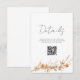 Cartão plano de cerimônia de entrega do código QR de flor selvagem. Fácil de alterar o texto e adicionar o URL ao código QR. Bonito, elegante floral de aquarela para o seu casamento.
