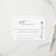 Nossos florais de prados azuis pastel decoram este cartão rsvp que pode ser usado como cartão postal de retorno autoendereçado. Estas placas compactas de 3,5"x5" são o tamanho mínimo exigido pelo Serviço Postal dos EUA. Convites de casamento e outros artigos de papelaria contendo nossas flores azuis estão disponíveis neste compro - A coleção de prados Azuis Tangidos. Se você optar por usá-lo como um cartão postal, desmarque a opção de envelope antes de fazer check-out.
