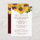 Cores d'água Burgundy Sunflower Rustic - cartões de detalhes de casamento.