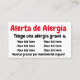 Cartão de Jantar de Alerta de Alergia - em Inglês