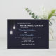 Cartão de janto de ensaio projetado de forma romântica com fundo azul marinho profundo com luzes iluminantes nas ruas. Também há RSVP e Convites de casamento disponíveis deste conjunto. Torne a sua ocasião especial realmente memorável começando com convites.