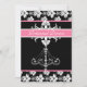 O ensaio de Chandelier cor-de-rosa janta cartas com um candelabro branco e impressão de umidade em fundo preto e fundo cor-de-rosa. Eles são fáceis de personalizar com todos os detalhes do seu janto de ensaio e também temos os convites de casamento, convites para chás de noivas e casais, cartões de RSVP, notas de agradecimento, folhas de informações, autocolantes, postagens e muito mais!