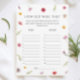 Torne o seu chá de panela inesquecível com o nosso Cartão de Jogo de Idade do Chá de panela Floral Personalizado. Perfeito para um amor está no tema do chá de panela floral, amor no tema do chá de panela floral, ou o amor é um tema de chá de panela florescente, este charmoso cartão complementa um tema de chá de panela de flor silvestre ou um tema de chá de panela floral. Excelente para ideias de chá de panela de festa de chá, pétalas e tema de chá de panela prosecco, ou ideias de chá de panela de jardim, ele adiciona um toque divertido e único à sua celebração