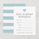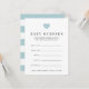 Deixem os chás de fraldas darem as suas melhores palpites na data e hora de nascimento do bebê, peso e comprimento! Coloque uma pilha na entrada do evento, passe-as ou deixe uma em cada lugar. Faz uma manga divertida para a mamãe ser, também, quando compilada em uma caixa bonito ou um encadernador. Design apresenta um coração azul pálido no topo com uma inscrição negra moderna e um padrão de risca azul e branca no lado oposto.