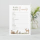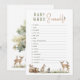 Apresentando nosso cartão de jogo de palavras de bebê, perfeito para uma celebração engraçada e caprichosa! Apresentando um tema da floresta aquarela com criaturas adoráveis como uma raposa, urso pardo, coelho e veado, é excelente para um chá neutro em relação ao gênero. Esta design de inspiração boêmica estabelece uma cena doce e simples com sua paisagem natural de árvores verdes e aves clássicas da floresta. Ideal para acolher um menino ou uma menina, este jogo de chá de fraldas é tão charmoso quanto eterno. Por favor, sinta-se à vontade para fazer quaisquer perguntas sobre a design do produto; estamos felizes em ajudar! 1.Dormir 2.Leite 3.Pacificador 4.Brinquedos moles 5.Assento Do Carro 6.Bibs 7.Bath Termômetro 8.Frasco 9.Limpa 10.Fralda 11.Traço 12.Cadeira Alta 13.Rolante 14.Mesa de mudança 15.Transportador
