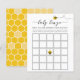 Cartão de bingo de chá de bebê com tema de abelha apresentando ilustrações de abelhas adoráveis. Uma maneira divertida de interagir com os convidados enquanto a futura mamãe abre seus presentes.