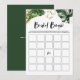 Adicione este divertido cartão de jogo de bingo de chá de panela com tema tropical. Ele apresenta folhas tropicais com acentos tropicais em folha de ouro falso. Personalize adicionando um nome e evento no verso do cartão. Este cartão de bingo de noiva com folhagem é perfeito para chá de panela de noiva com tema tropical e de verão.