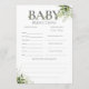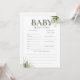Cartão de jogo de chá de bebê com previsões para o