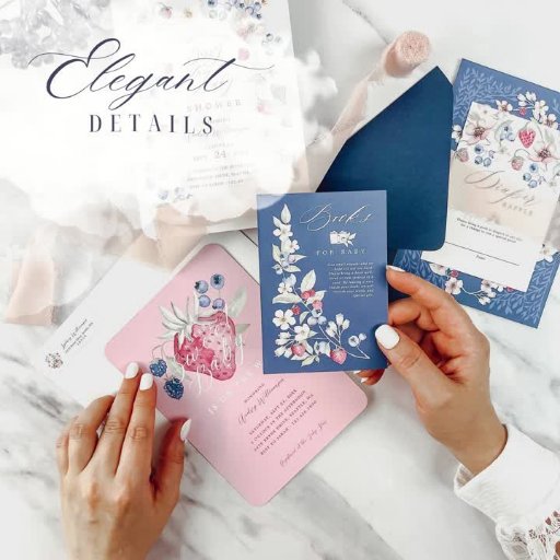 um cartão para celebrar a chegada do seu pequeno. Adicione diversão às suas festividades de chá de fraldas com o nosso doce de baga ou com o cartão de jogo. O topo é enquadrado com nossas amoras e flores desenhadas à mão. O verso apresenta nossas bagas e flores pintadas à mão. Trabalho de arte e design por © Moodthology Papery.