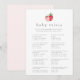 Esta placa de jogo de trivialidades cor-de-chá de fraldas cor-de-rosa da Coleção Heidi é perfeita para um chá de fraldas de primavera ou de Verão ou para um pulverizador de bebês. O desenho único do livro apresenta morangos piquenique bonitos em vermelho, rosa e branco. CHAVE DE RESPOSTA DO BEBÊ TRIVIA: 1.B, 2.C, 3.A, 4.B, 5.C, 6.D, 7.C, 8.C, 9.B, 10.A