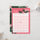 Placa de Bingo chá de fraldas - Os botânicos de aquarela rica e enxuta de folha verde-palma tropical e os flamingos cor-de-rosa pincelados com traços de rosas cor-de-rosa estão maravilhosamente organizados para criar esta placa de bingo chá de fraldas ousada, moderna e na moda. As palmeiras tropicais são dispostas para criar um quadro de na moda que apresenta os quadrados de bingo. O verso apresenta uma impressão ousada de borda a borda do verde-aquarela tropical com notas sutis das rosas cor-de-rosa para complementar o trabalho de arte frontal. Todas as ilustrações contidas nesta placa de bingo de chá de fraldas flamingo rosa tropical são obras de arte originais desenhadas à mão pela Moodthology. Você pode personalizar o tamanho do texto, a cor do texto, a fonte e o layout para a sua própria preferência de design pessoal.