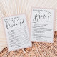 O cartão de jogo de chá de panela chic corresponde à nossa coleção de chás de panela Romance de Paris e apresenta letras brancas de script preto e bordas cor-de-rosa suaves com torre Eiffel e minúsculos sotaques de pássaros. Cartão duplo permite que você ganhe dois jogos em um só! A frente mostra como você conhece a noiva e se reverte para o que está em seu telefone. Personalize com a noiva para ser o nome e a data do chá. As perguntas "What's in Your Phone" (O que há no seu telefone) são completamente personalizáveis usando os campos de modelo na página. Para personalização adicional, sinta-se à vontade para entrar em contato comigo!