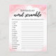 Cartão de Jogo de Festa Dourada do Rosa de Aniversário do Word Scramble. CHAVE DE RESPOSTA: 1. Convite 2. Parte 3. Confetti 4. Presentes 5. Bolo 6. Balão 7. Aniversário 8. Pinata 9. Apresenta 10. Faixa 11. Sorvete 12. Jogos 13. Decorações 14. Velas 15. Desejos.
