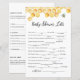 Cartão de Jogo de Libs de Chá de fraldas de Abelha