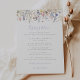 Este cartão de cardápio de beijos de flores silvestres é perfeito para uma recepção de casamento moderna. O design apresenta uma coloração aquosa, rosa, púrpura, vermelha, burgundy, amarela, flores brancas e borboletas, com vegetação nebulosamente embebida em buquês florais elegantes.