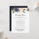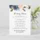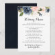 Este cartão de jogo de cardápio floral de inverno é perfeito para uma recepção de casamento moderna. O design apresenta belas flores azuis escuras, azuis, marinhos, rosa, pinceladas, douradas e folhagem verde pintadas manualmente, amontoadas em buquês elegantes.
