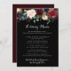 Este cartão de cardápio de beijos de casamento preto é perfeito para uma recepção de casamento clássica. A design apresenta flores brilhantes, vermelhas, marinhos, azuis e esbranquiçadas radiantes e graciosas pintadas à mão num fundo preto, inspirando beleza natural.
