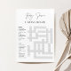 Cartão de Jogo de Palavra Cruzada do Chá de fralda