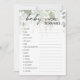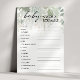 Apresentando nosso cartão de jogo de palavras de bebê chá de fraldas verde encantador, com sotaques de ouro delicados em meio à folhagem exuberante de folhas de eucalipto de sábio e motins de sage. Sua design minimalista, infundida com elementos botânicos, evoca um senso de alura boêmica, criando uma atmosfera encantada. Mergulhe na beleza serena do verde-aquarela enquanto você embarca em uma jornada de celebração cheia de alegria. Por favor, sinta-se à vontade para fazer quaisquer perguntas sobre a design do produto; estamos felizes em ajudar! 1.Dormir 2.Leite 3.Pacificador 4.Brinquedos moles 5.Assento Do Carro 6.Bibs 7.Bath Termômetro 8.Frasco 9.Limpa 10.Fralda 11.Traço 12.Cadeira Alta 13.Rolante 14.Mesa de mudança 15.Transportador