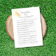 Este é um cartão de jogo de chá de fraldas de teste do Nursery Rhymes. Lua branca amarela com estrelas e um ursinho de pelúcia sentado sobre a lua sobre fundo branco na frente, e fundo amarelo com pontos de polca brancos nas costas.
