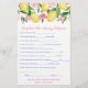 Jogo nostálgico de chá de fraldas "Complete The Nursery Rhymes" em limões com sotaques azuis cor-de-rosa e cobalto design. Sugiro que compre no papel de "valor", pois é mate/não revestido e tão fácil de escrever.