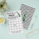 Jogo do Bingo do Chá de panela Eucalyptus. Mude a redação para o design. Para obter mais personalização (alterar outro texto, cor da fonte, estilo da fonte ), clique em personalizar, role para baixo e clique no link "clique para personalizar mais". HOMENAGEM: Os convidados enchem os quadrados de vazio com suas palpites de presentes recebidos. Quando a futura noiva abre os presentes, os hóspedes marcam os quadrados com a resposta correta. O primeiro a ter cinco respostas corretas consecutivas ganha!