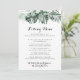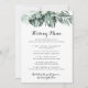 Este cartão de cardápio de beijos de verde tropical é perfeito para uma recepção de casamento rústica. A design apresenta palmeiras verdes folhas buquês com flores brancas adoráveis.