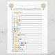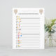 Esta placa de jogo de dois lados apresenta duas versões diferentes do pictionary emoji na frente e atrás, e é perfeita para um chá de fraldas ou uma borda de bebê. Este jogo de chá de fraldas emoji apresenta um balão de ar quente boho beige com aquarela. Perfeito para uma celebração neutra em termos de gênero. Seus hóspedes podem resolver essas frases comuns de gravidez e de bebês decodificando os emoticons. CHAVE DE RESPOSTA: 1. Chá de fraldas 2. Gêmeos 3. Tripletes 4. Mamãe tem 5 anos. Quebra de água 6. Babá 7. Data de vencimento 8. Frasco 9. Viagem ao Hospital 10. Cortando o cabo 11. Arma no Forno 12. Sem Álcool 13. Menina ou Menino? 14. Anúncio de Gravidez 15. Comida 16. Queimadura cardíaca 17. Doença da Manhã 18. Beijos borboletas 19. Querida Lua 20. Desavenças De Gravidez. Os vossos hóspedes podem resolver os nomes dos livros infantis e das rimas de infantários descodificando os emoticons. CHAVE DE RESPOSTA: 1. Cinco Pequenos Macacos Pulando Na Cama 2. Twinkle Twinkle Pequena Estrela 3. Itsy Bitsy Spider 4. Peixe Arco-Íris 5. A Tão Faminta Lagarta 6. O Leão, A Bruxa e o Guarda-roupa 7. Dickory Dock 8. Eu espio 9. Ovos Verdes e Pressão 10. Winnie The Pooh 11. A Web 12 da Charlotte. Alice no País das Maravilhas 13. Se Dar A Um Rato Um Cookie 14. Diddle Diddle 15. Havia uma velha mulher 16. Um Peixe, Dois Peixes, Peixe Vermelho, Peixe Azul 17. Onde As Coisas Selvagens São 18. Cachinhos dourados e os Três Ursos 19. Os Três Pequenos Porcos 20. O velho MacDonald tinha uma Fazenda. Você pode personalizar este design clicando em "Personalizar este modelo" ou se quiser alterar a fonte, as cores ou organizar os elementos design de uma forma diferente, você pode clicar em "Editar usando a Ferramenta Design".