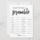 Um simples e elegante Cartão de Jogo do Word Scramble com palavras divertidas e com tema de casamento para hóspedes desembaraçarem. Perfeito por adicionar um toque de entretenimento à sua celebração noiva num estilo minimalista.